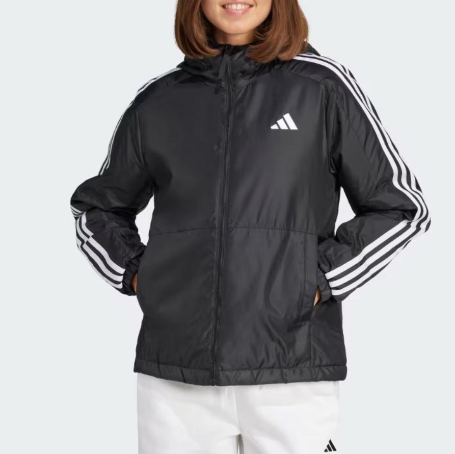 Be ready for every adventure with this Adidas insulated outdoor jacket for women. Designed with lightweight synthetic insulation, it keeps you comfortably warm without feeling heavy. The adjustable hood provides a perfect fit to protect you from the cold, while the practical side pockets let you warm your hands or store small essentials.